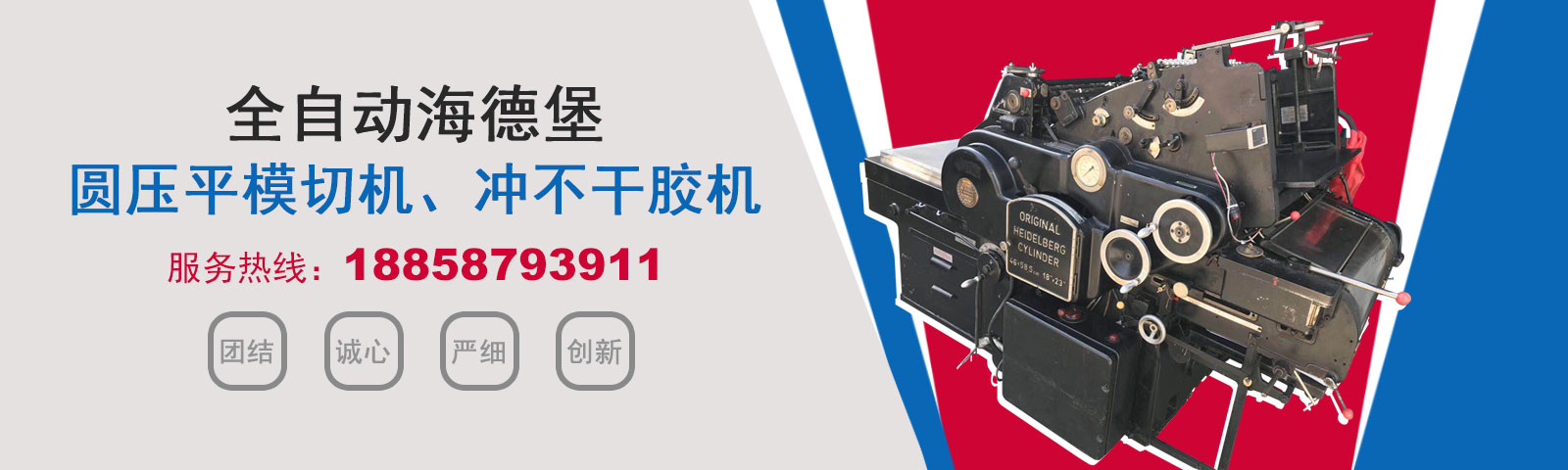 瑞安市恒柯機械廠(www.wzhkjx_com.rsfbeuw.cn)是國內專業制造銷售全自動模切機,全自動燙金機,圓壓平模切機,圓壓平燙金機,滾筒燙金機,沖不干膠機,海德堡凸印機.銷售的產品系列規格齊全,產品具有速度快,壓力均勻,套印準確等特點。
